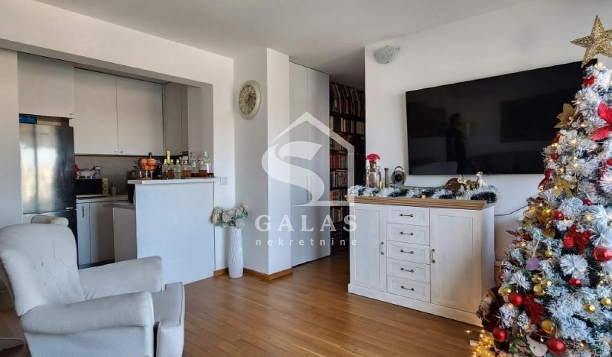 Enjoy the beautiful view from the living room, from which the kitchen is slightly separated, which is aesthetically excellent. The two bedrooms provide perfect comfort and privacy, while luxurious materials and carefully selected details create a sophisticated atmosphere. From the corridor you can enter all rooms and a comfortable bathroom with a shower cabin.